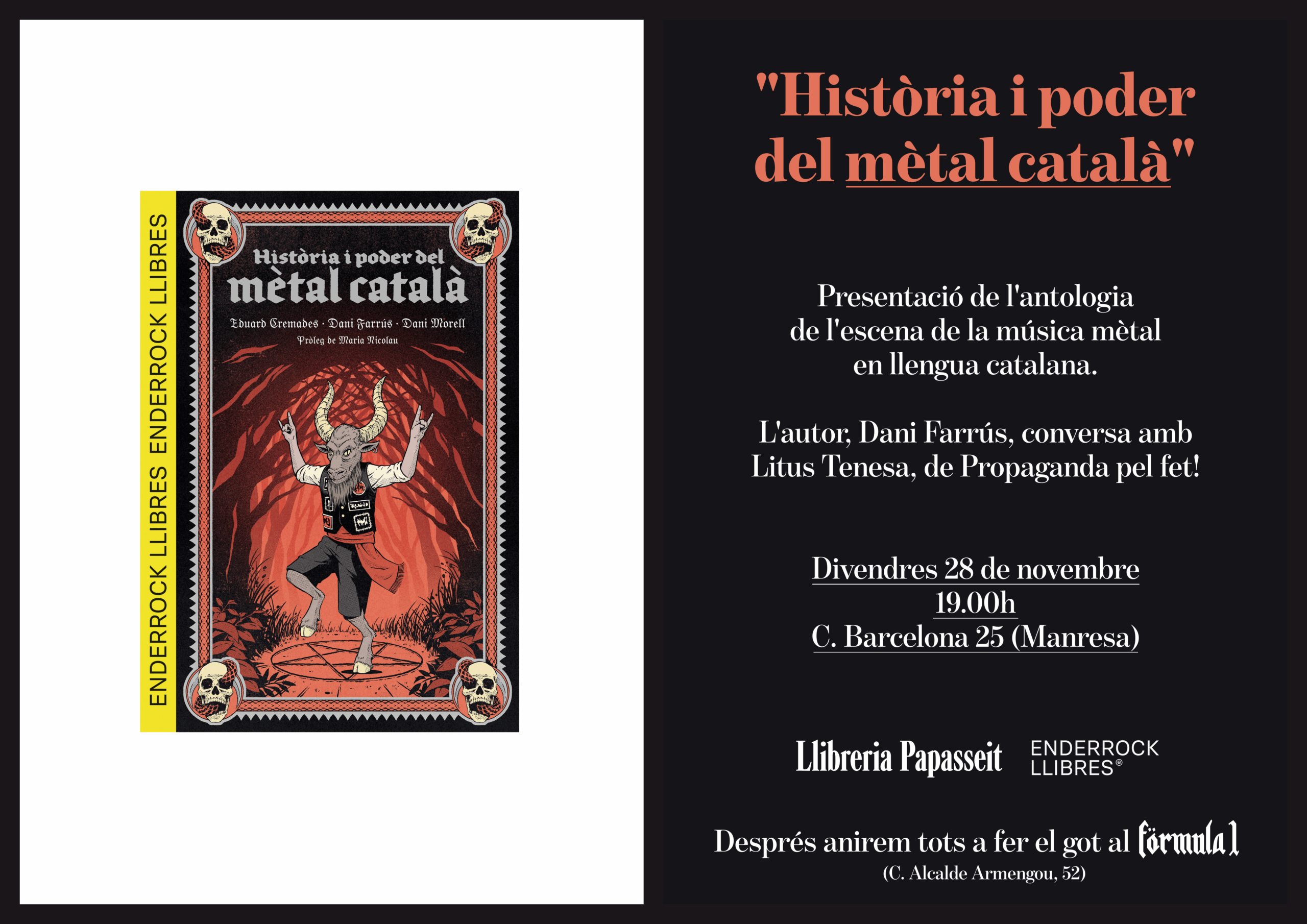 Presentació del llibre "Història i poder del mètal català", publicat per Enderrock Llibres. L'Autor, Dani Farrús, conversa amb Litus Tenesa, de Propaganda pel fet!